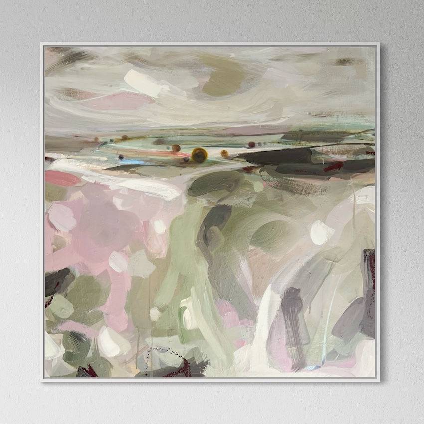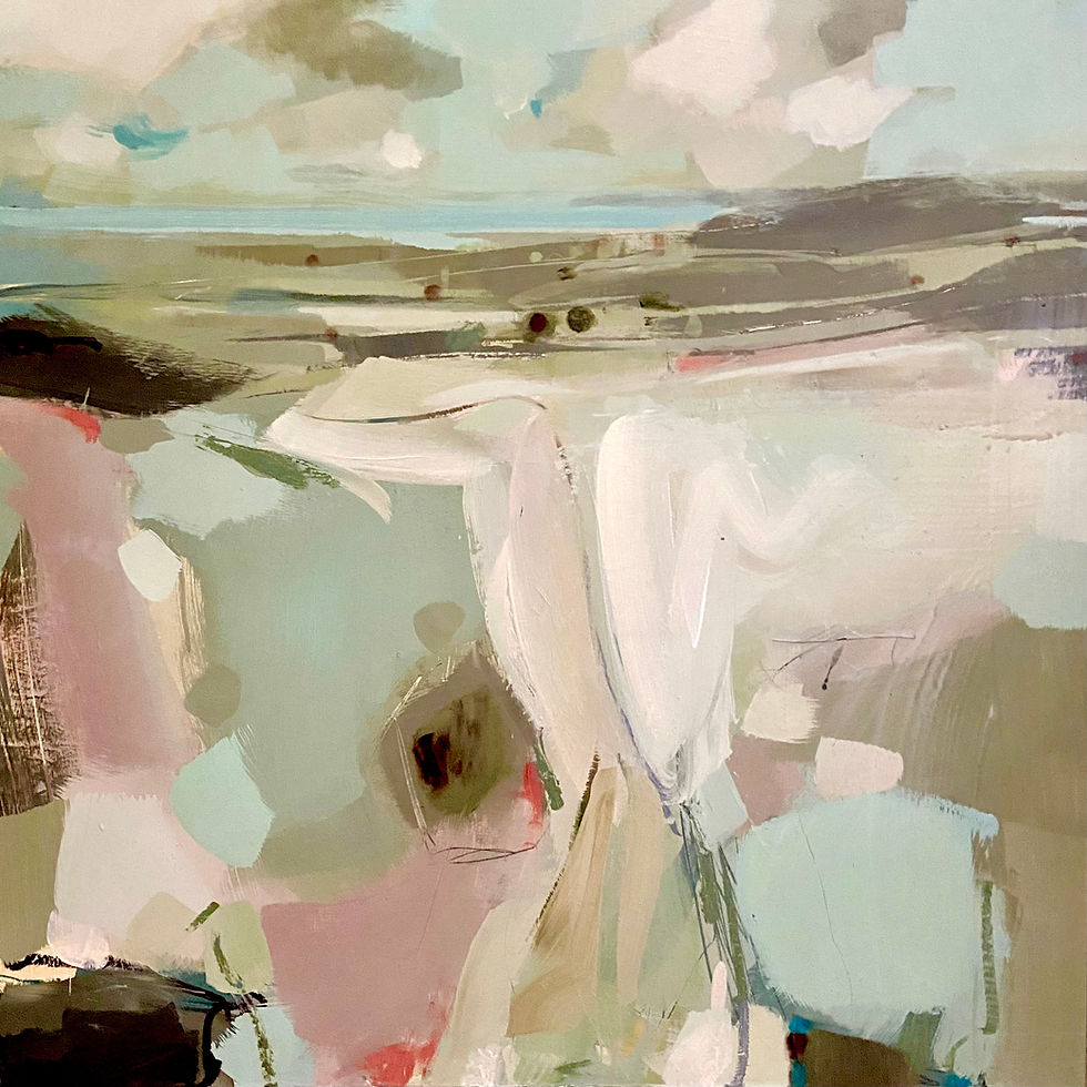 My landscape paintings explore the simplification of pattern, space, colour and texture from places I have visited. Some of these are specific to landscapes around my studio in Surrey, the South Downs and Devon but mostly they are my imagined places, a visual amalgamation of memories and feelings from one or many places.