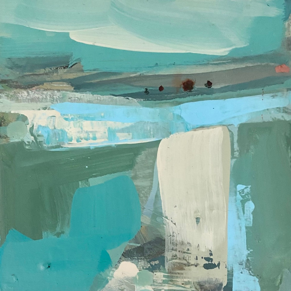 My landscape paintings explore the simplification of pattern, space, colour and texture from places I have visited. Some of these are specific to landscapes around my studio in Surrey, the South Downs and Devon but mostly they are my imagined places, a visual amalgamation of memories and feelings from one or many places.