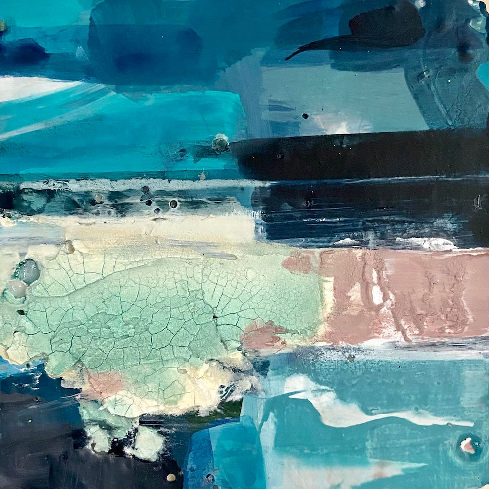 My landscape paintings explore the simplification of pattern, space, colour and texture from places I have visited. Some of these are specific to landscapes around my studio in Surrey, the South Downs and Devon but mostly they are my imagined places, a visual amalgamation of memories and feelings from one or many places.