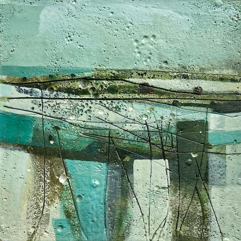 My landscape paintings explore the simplification of pattern, space, colour and texture from places I have visited. Some of these are specific to landscapes around my studio in Surrey, the South Downs and Devon but mostly they are my imagined places, a visual amalgamation of memories and feelings from one or many places.